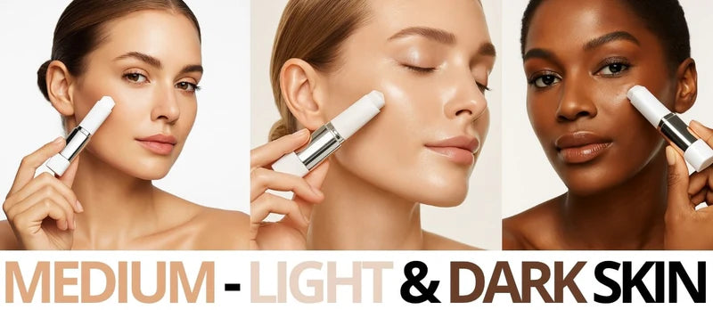 Foundationen findes i 3 varianter – Lys, Medium og Mørk – som tilpasser sig dynamisk til alle de mellemliggende nuancer. Du skal blot vælge den base, der ligger tættest på din hudtone, så klarer formlen resten.